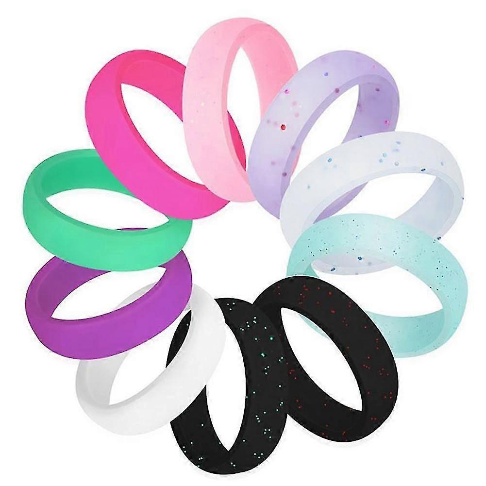 Farfi 10pcs/set Hypoallergenic Flexible Glitter Silicone Rings Set Couple Jewelry