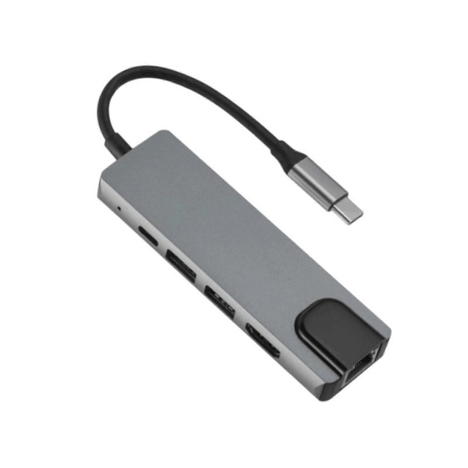 Fast Speed Type C Hubs HDTV USB2.0 USB3.0 PD100W Output Wire Internet Connection Metal Laptop Accessory Multicolor