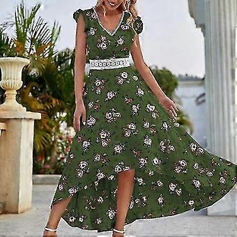 فستان ماكسي كشكش كم قصير خلع الملابس لينة ساحرة المرأة الأزهار طباعة عارضة اللباس أناقة الشارع