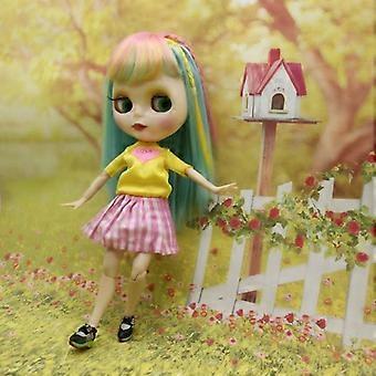 1/6 مقياس مجموعة الملابس الكاجوال - مطبوعة أعلى تي شيرت والوردي منقوشة تنورة قصيرة مع سروال داخلي لبلايث دمية حزب الملابس الاكسسوارات