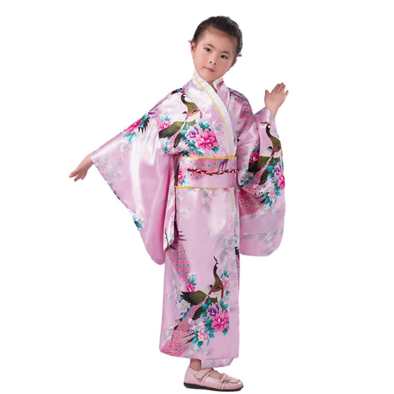 Fianao 1 Set Girls Traditional Kimono Pajama Vibrant Colors Floral Peacock Print Easy to Wear Kimono