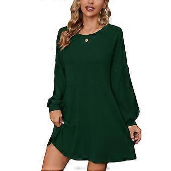 فستان مضلع برقبة مستديرة بأكمام طويلة لون عادي عارضة مضلع محبوك فستان قصير أخضر S
