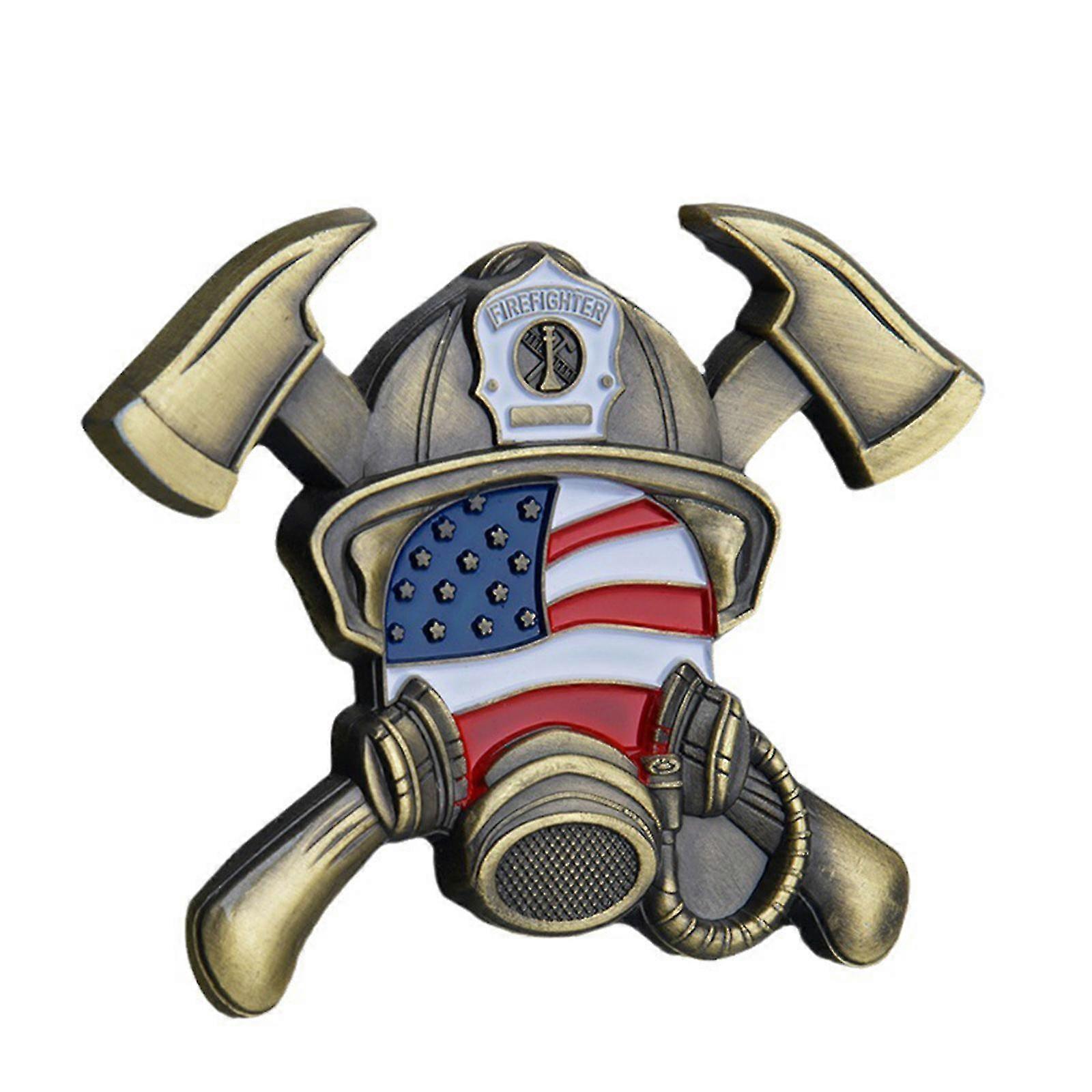 Firefighter Commemorative Coin, Maltese Cross Design with Prayer, Firefighter Badge & US Flag