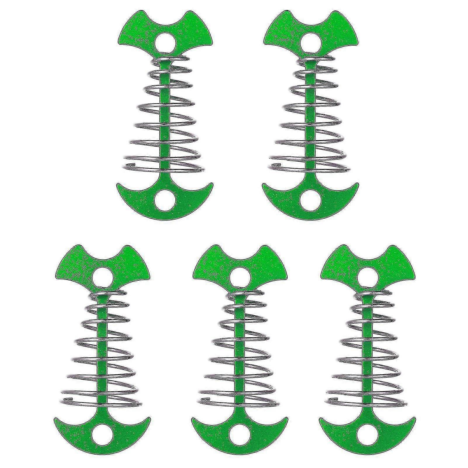 Fishbone Tent Rope Tightener Wear-resistant Flexible Non-deformable Fishbone Tent Pile With Spring Buckle Outdoor (5 Pieces, Green)