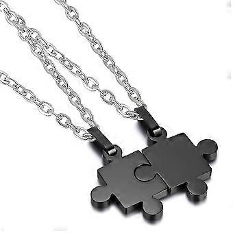 2kpl musta ruostumattomasta teräksestä valmistettu palapeliriipus pari kaulakorusarja 18" ja 22" ketjuilla Elsavct