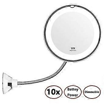 Flexible Gooseneck 10x Magnifying LED Lighted Makeup Mirror