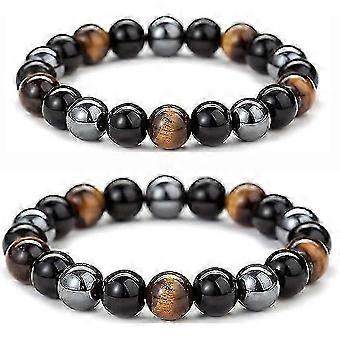 سوار حماية ثلاثي ، 2 قطعة حجر السج الأسود ، عين النمر ، الحجر ، الهيماتيت ، عين النمر ، سوار ثلاثي ، يجلب الحظ السعيد ، سوار للجنسين ، 16 سم ، ستون
