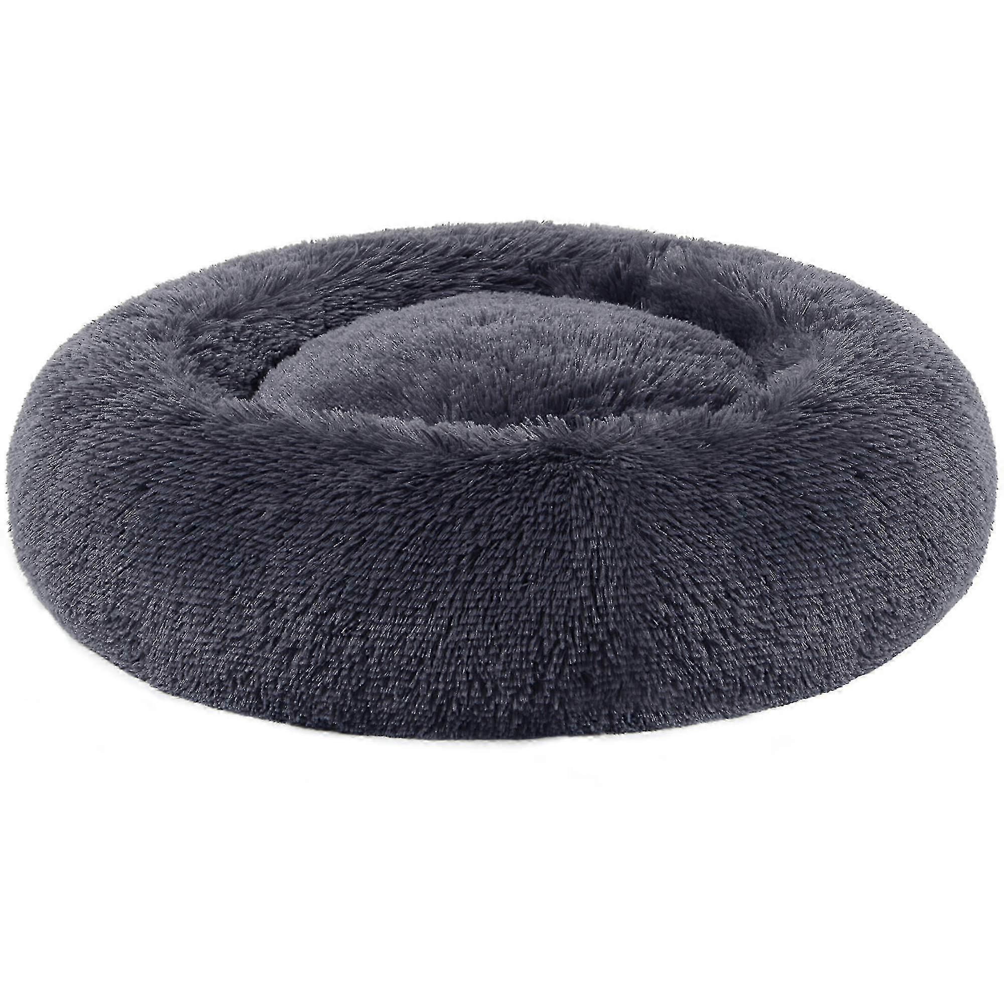 Fluffy Cat Bed, Donut Cushion, Washable, Removable Padding In The Middle, Long Plush, 80 Cm Diameter, Dark Gray