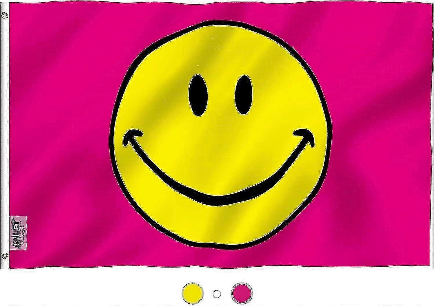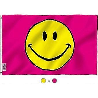 Fly Breeze 3x5 Foot Pink Smiley Face Flag - Vivid Color And Fade Proof - Canvas Header And Double Stitched - Happy Face Flags Polyester With Bras