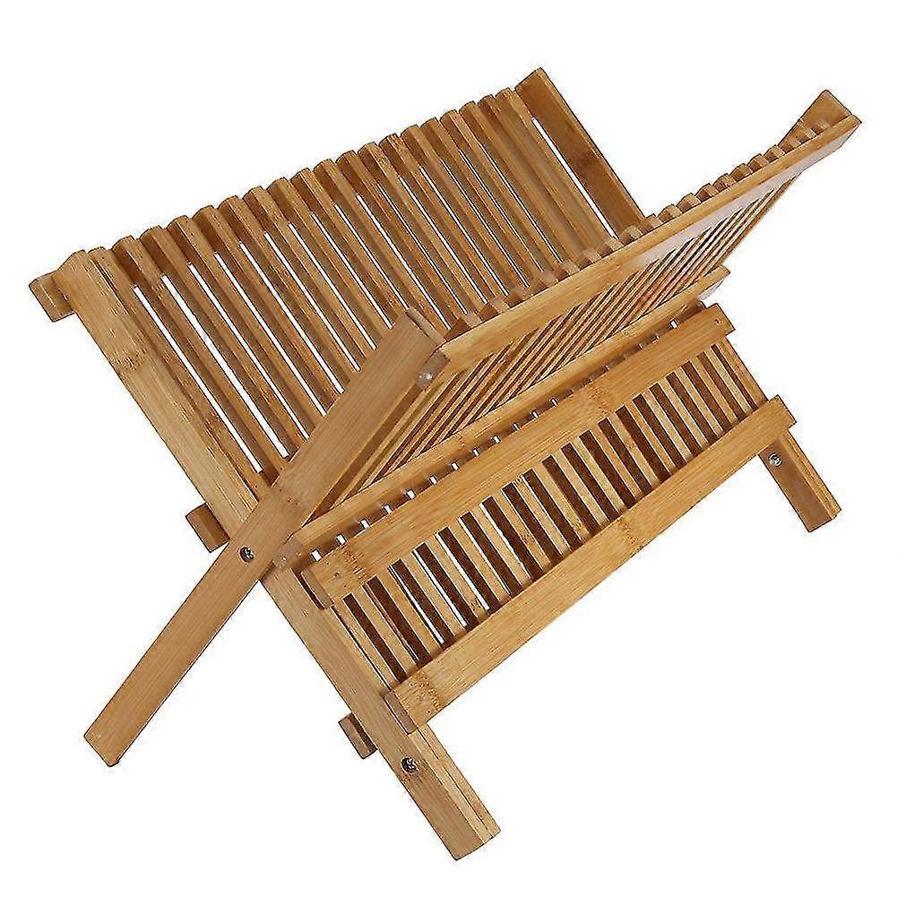 Foldable Bamboo Dish Drying Rack - Collapsible Compact Plate Organizer & Drainer for Kitchen Efficiency and Space-Saving Solution