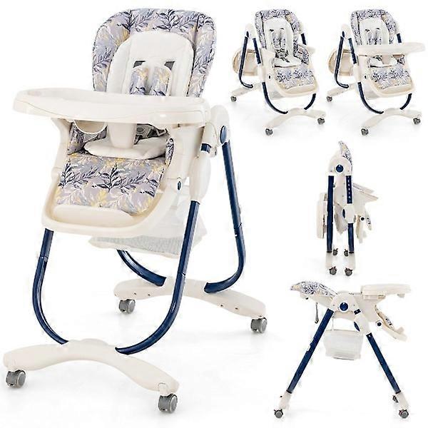 Foldable High Chair with Wheels & Adjustable Height & Footrest & Backrest Baby Seat Navy Blue
