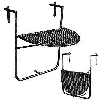 Folding balcony table, suspended on a railing, black. Space-saving furniture.