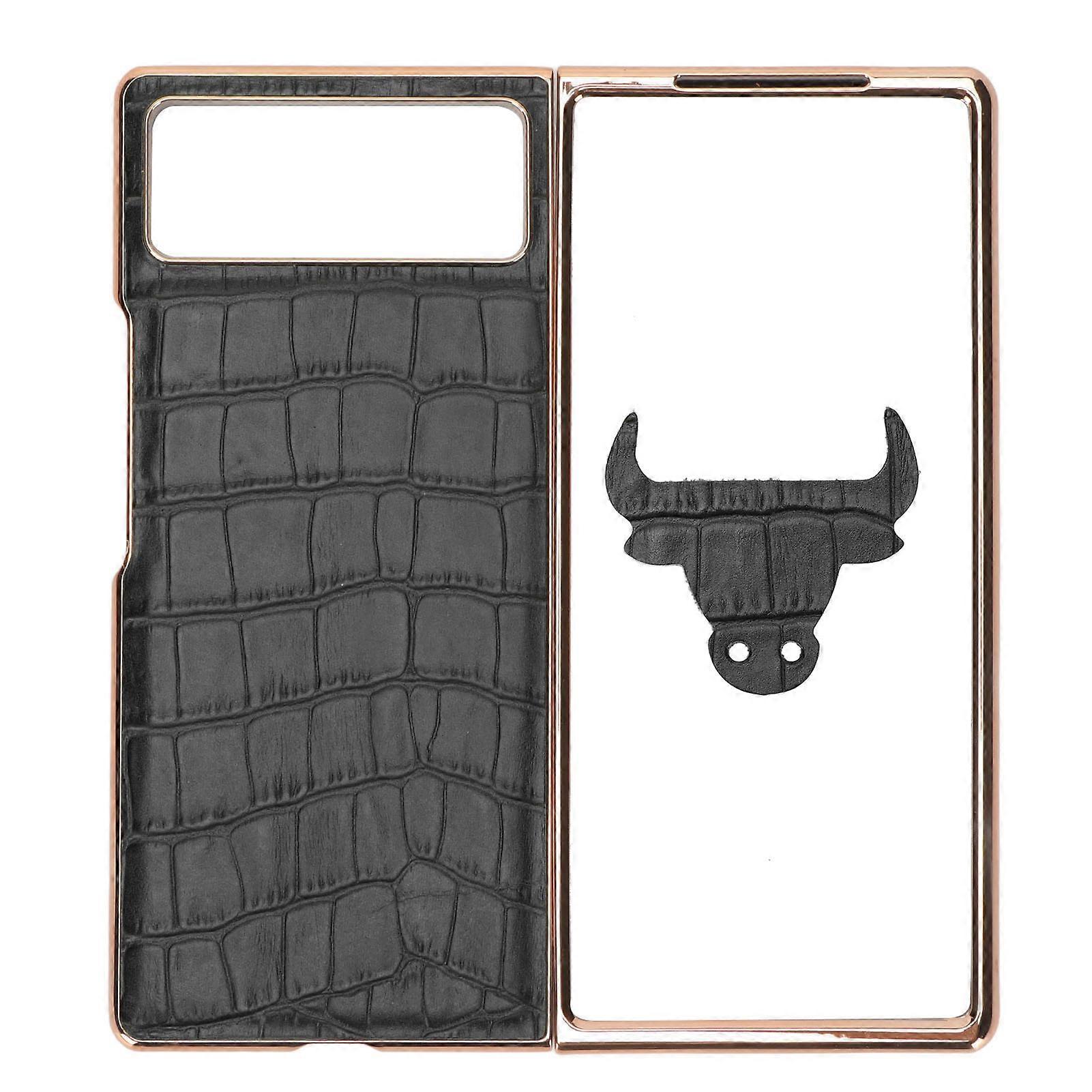 Folding Phone Case for Xiaomi MIX Fold 2 Nano Leather Crocodilian Pattern Anti Scratch Phone Protective Case Black