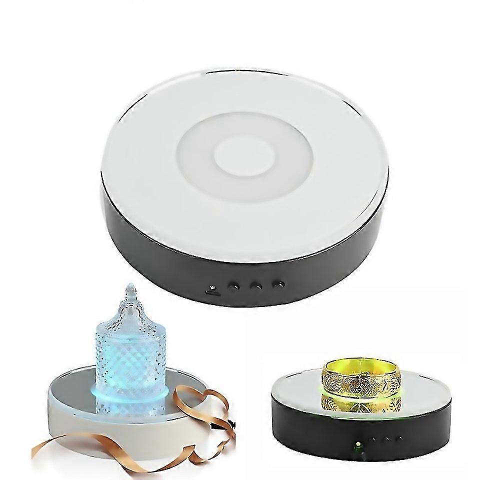 Fangrui Product Details 1. 15cm Spinning Display Stand With Gradient Color Lights For Glass Art 2. Use This Rotating Stand To Display Your Favorite Works. It Features Gradient Colored Lights That Make The Items More Beautiful And Charming. 3. This Smoothly Rotating Stand Allows You To View The Displayed Items In 360 Degrees. The Motor Runs Quietly And Will Not Disturb Your Study, Work, Meditation Or Sleep. 4. 3 Power Supply Methods - This Rotating Display Stand Can Be Connected To A Computer, Laptop Or Mobile Power Supply Using A Usb Data Cable. It Can Also Be Used With 3 Aa Batteries Or 18650 Lithium Batteries (not Included). 5. The Display Turntable Has Gradient Colored Lights And A Mirrored Surface, Which Can Well Reflect The Various Objects You Place On It, Especially Your Glass Crafts Or Crystal Items, And Provide A Quiet Display That Can Cast Beautiful Projections In Your Home Or Office. 6. Button Description: 7. When The Machine Is Powered On (press The Program Switch Button To Switch Programs, And The Adj Button To Adjust) 8. (1) The Led Lights Up In Red, Indicating The Speed Gear. Press The Adj Button To Switch Between Fast And Slow Gears; 9. (2) The Led Lights Up In Green, Indicating The Forward And Reverse Gears. Press The Adj Button To Switch Between Forward And Reverse Gears; 10. (3) The Led Lights Up In Orange, Indicating The Angle Switch. Press The Adj Button To Switch Between 45 Degrees, 90 Degrees, 180 Degrees, And 360 Degrees. 11. Specifications: 12. Product Load: 3-5kg 13. Product Speed: 20s40s Revolutions 14. Product Size: 150 X 38mm 15. Speed Regulation: 2-speed Speed Regulation 16. Weight: About 335g 17. Power Interface: 5v Usb Interface