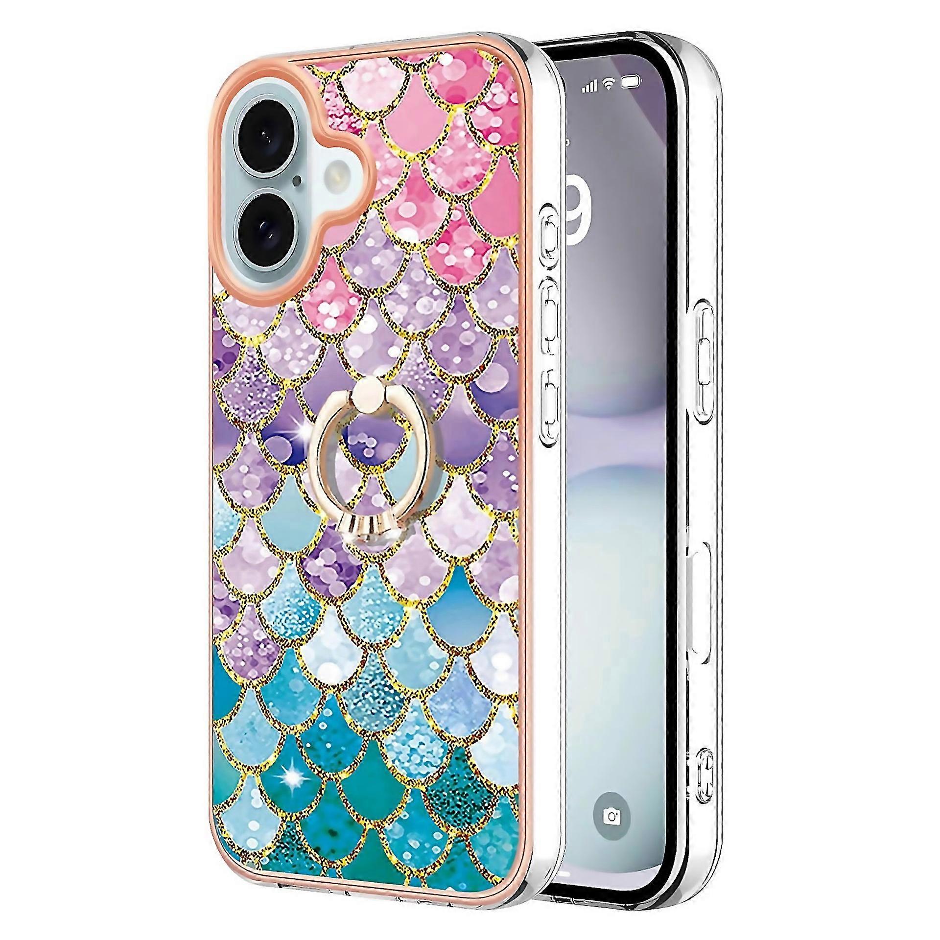 For 16 Plus Electroplating Pattern Imd Tpu Shockproof Case With Rhinestone Ring Holder
