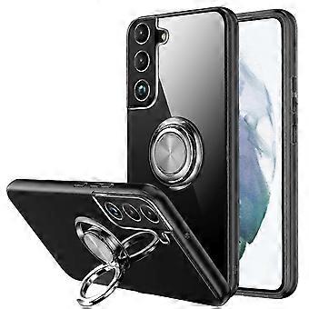 For Galaxy S22+ 5G Shockproof Matte Transparent TPU Phone Case with Ring Holder