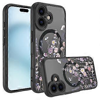 For iPhone 16 Case Compatible with MagSafe Flower Printing Pattern Anti-Drop TPU+PC Phone Cover