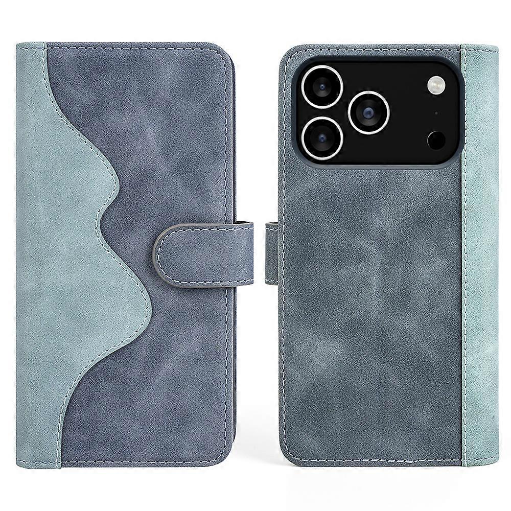 For iPhone 17 Pro Wallet Case Leather Phone Cover Splicing Color Blue