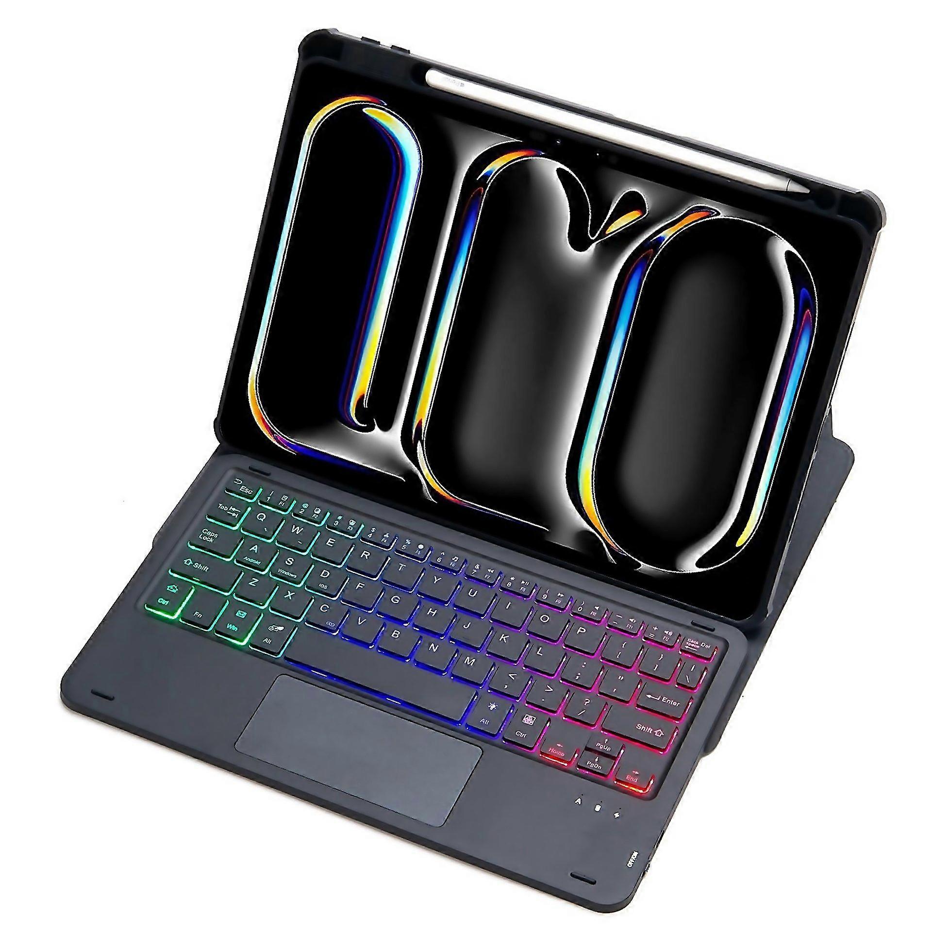 Fangrui Product Details 1. L13-as 360 Rotation Acrylic Transparent Bluetooth Keyboard Leather Case With Touch Control Backlight 2. Charging Port: Type-c Interface 3. Effective Operating Distance: 10 Meters 4. Modulation Mode: Gfsk 5. Working Voltage: 3.7-4.0v 6. Working Current: 200ma 7. Standby Time: > 100 Days 8. Charging Time: 2-3 Hours 9. Lithium Battery Capacity: 450ma 10. Sustainable Working Time: Not Less Than 30 Hours 11. Support Three-color Backlight Keyboard