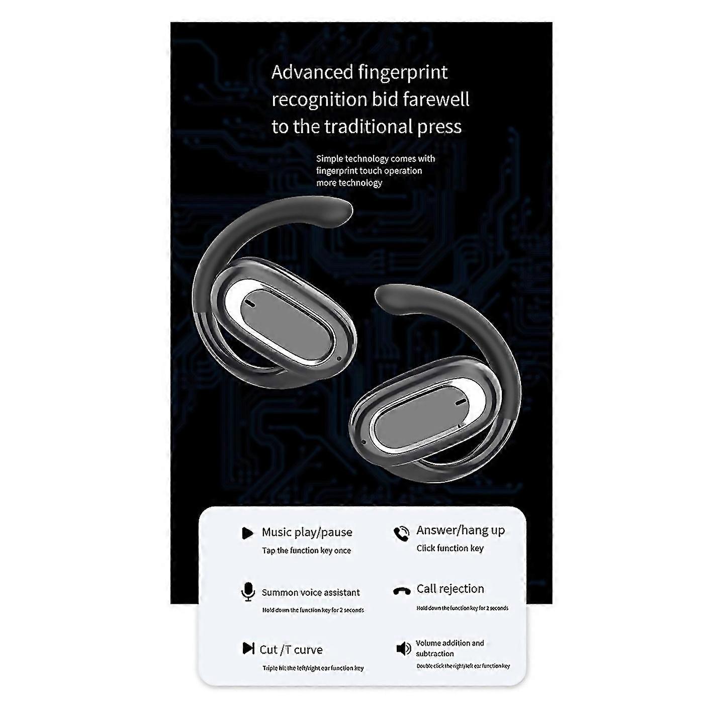 Fangrui Product Details 1. Non-sensory Ear-mounted Earphones That Cant Be Removed; Low Game Latency 2. Three-dimensional Spatial Surround; 12h Long Battery Life 3. Bluetooth 5.3 Dual Hosts; Binaural High-definition Calls 4. Free Switching Between Single And Double Ears; Universal For /android 5. Out-of-cabin Memory Connection In Seconds; Type-c Fast Charging; Smart Touch Operation Description: 1.functions: Waterproof, Noise Reduction, Breathing Light, Long Battery Life, Call Function, Music Support, Digital Display Screen 2.whether It Is Single-ear And Binaural: Bilateral Stereo 3.bluetooth Protocol: 5.3 4.battery Life: 4-8 Hours 5.waterproof Performance: Ipx4 6.transmission Range: 10 Meters 7. Chip: Lanxun 5656 8. Charging Compartment Capacity: 300mah 9. Headphone Capacity: 60mah 10. Speaker: 14mm 11.bluetooth Version: V5.3 12. Listening Time: 6-7 Hours 13. Charging Time: 1-1.5 Hours 14. Charging Interface: Type-c Material: Plastic Colour: White Green Package Contents: 1 Pair X Bluetooth Headphones 1 X Data Cable 1 X Englis