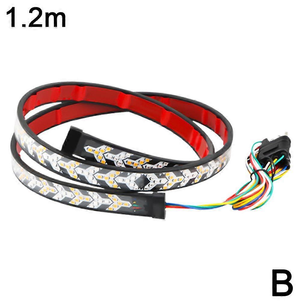 Specifications: Use voltage: DC12V Lamp type: 2835 light source Suitable for socket: 4PIN Shell material: PVC Description Temperamenty car lights--Made with multiple LEDs arranged in an arrow design, high lumen flexible LED light strip tailgate light bar kit, brighter in lumen and output than ordinary single row tailgate light bar, truck lights are bright and visible to drivers even in daytime Suitable for All Scenarios-The light strip is made of PVC material, fully sealed transparent plastic flexible tube, well-made, light weight, low consumption, can withstand various weather conditions such as rain, fog, sandstorms, snow, mud and windy season, making the lights visible thousands of feet away Easy to Install--No drilling required, just clean the grille/pedal where it is installed, then peel and stick the strobe light strip to install, strong adhesive and cable ties ensure stable installation, even when driving in rainy days, highways, potholes, the warning light can still stay on and work properly Quick Response-- There are many different flashing modes, perfect for late night calls, emergency, storm work or hazard Versatile Application--These light strips are the ultimate safety enhancement for a variety of vehicles, no matter what scene you are in, these lights are your reliable partner, perfect for construction vehicles, trailers, pickups, off-road SUVs 5-Function: All red LED light up(low beam mode) for runing lights. All red LED light up(high beam mode) for brake light. Left sequential amber LED light up for rear left turn signal, Right sequential amber LED light up for rear right turn signal Double flash danger warning light (yellow water running mode) Package Included: 1*pcs Truck Tailgate LED light bar