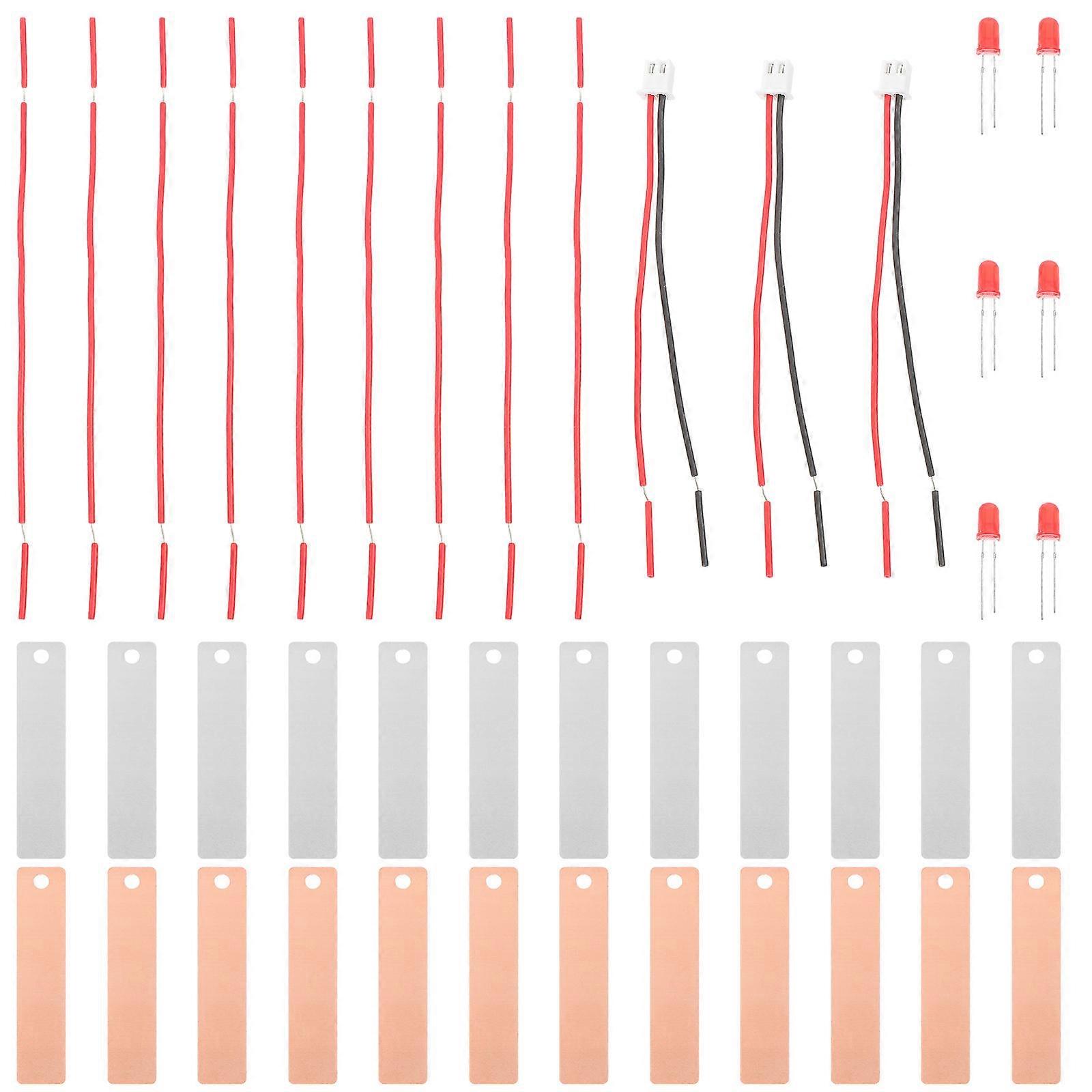It is DIY fruit battery potato clock science experiment kit, it can exercise your students practical ability, train your students observation capability, thinking and analytical skills. Bright colors will appeal to students and let them learn with fun and enjoyment. It is made of zinc, copper material, which is durable and useful. Features -Color:Multi -Material:Zinc, copper -Size:4.00X0.80X0.10cm/1.57X0.31X0.04in - Made of zinc, copper material, safe and reusable, it is not easy to damage students due to leakage. - Complete the fruit battery science experiment project with the students to let the students experience the mysteries of science. - Cultivate students imagination and hands-on ability, and make students more interested in science experiments. - By completing the fruit battery science experiment project with the students, enhancing feelings. - It can also improve students hands-on ability, increase scientific knowledge, and cultivate a hobby of scientific invention. Package list: 4 x Zinc Plates 4x Copper Plates 3 x Wires 2 x lamp beads 1 x leadwire