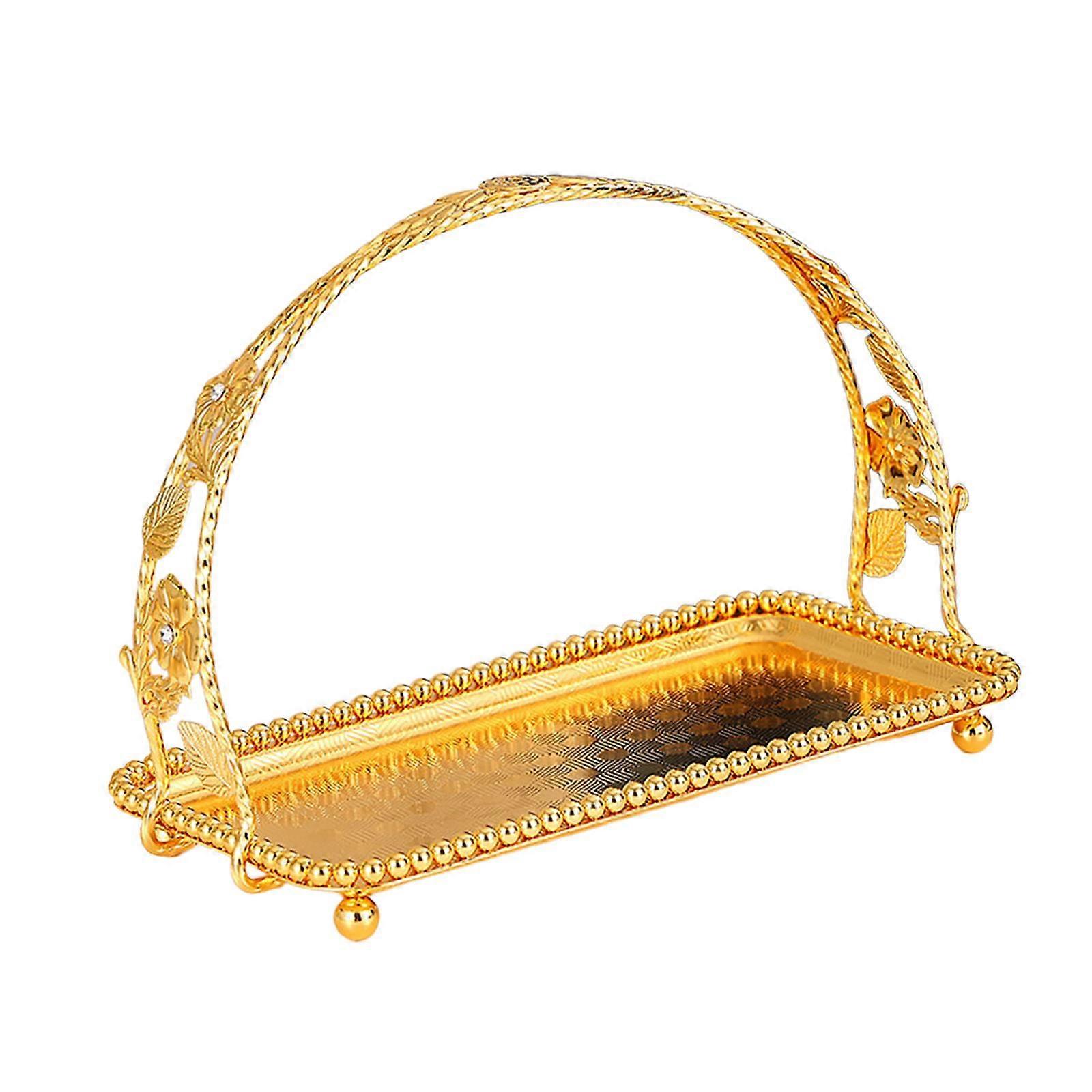 Fruit Tray Crafts Iron with Handle Embossment Patterns Multipurpose Dried Food