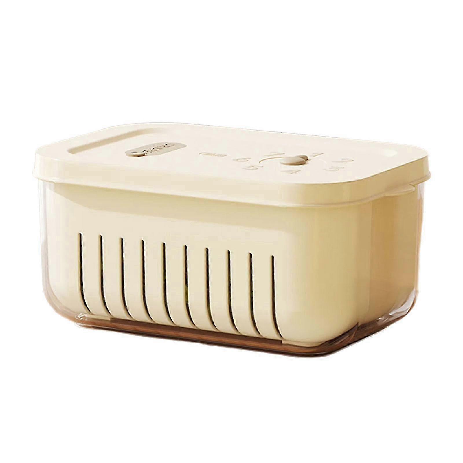 Fruits and Vegetables Container for Refrigerator Space Saving Sealed Box with Drain Basket Produce Organization Case off white w