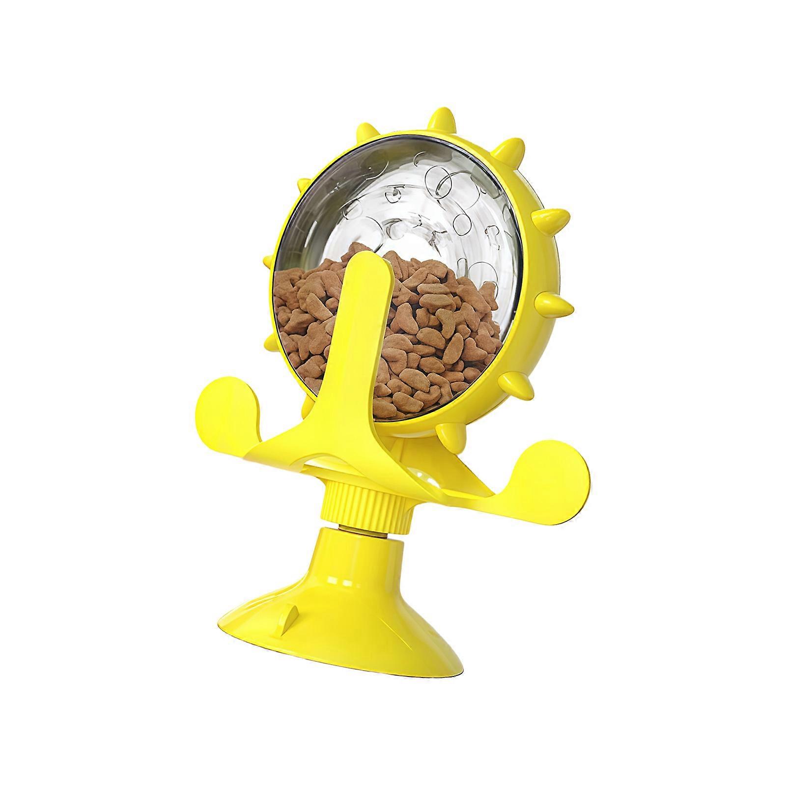 Funny Kittens Foraging Multifunctional Slow Feeder with Treat Teaser Spring Teasing Toy Exercise Flexibility Sensitivity Yellow