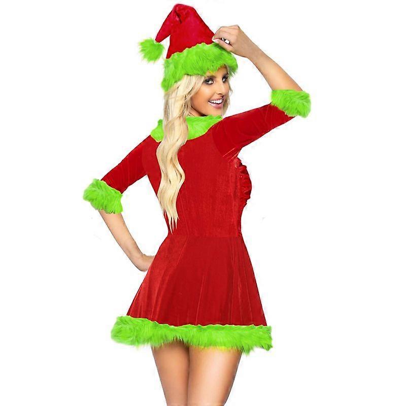 GaiBoSiCombhasaki Christmas Santa A-Line Dress for Women Fuzzy Plush Patchwork Trim Half Sleeve V-Neck Classic Green Monster Costume