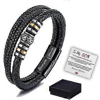 إلى ابني أحبك إلى الأبد سوار ، سوار جلدي مضفر للرجال ، سوار محفور من الفولاذ المقاوم للصدأ Amyi