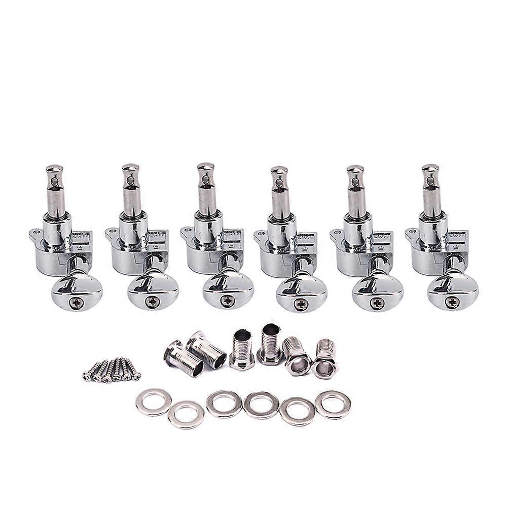 GC206F New 6 In Line Vintage Style Guitar Machine Heads 6L Tuning Pegs (Silver)