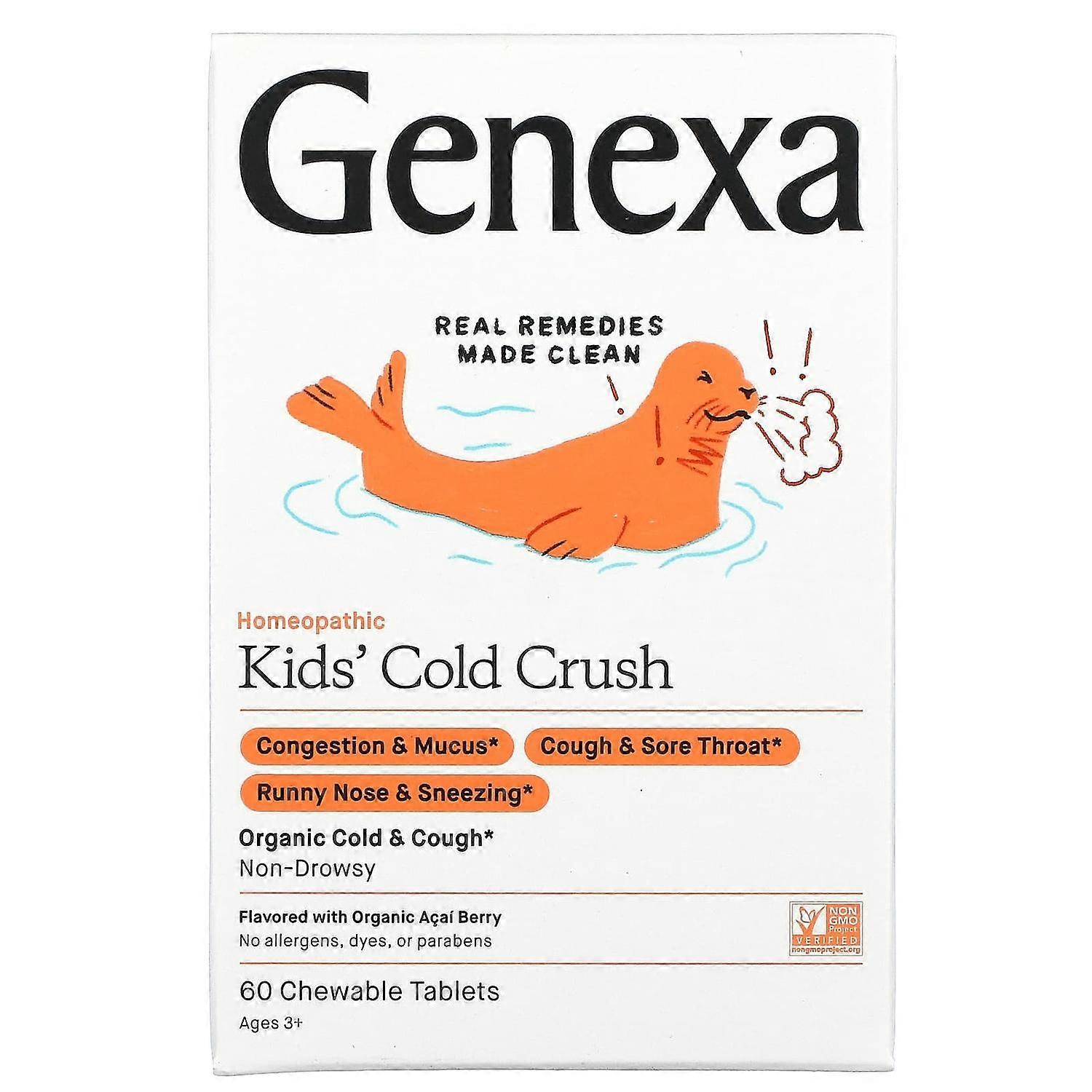 Genexa LLC, KidsÃÂÃÂÃÂìÃÂÃÂÃÂÃÂ¥ Cold Crush, Cold & Cough, Ages 3+, Organic Acai Berry, 60 Chewable Tablets