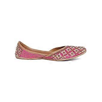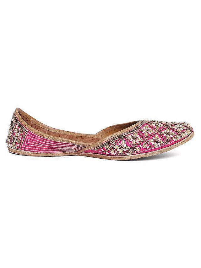 Glam Story Women's Hot Pink Embellished Punjabi Jutti