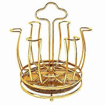 Usage Tips: [Rotatable Iron Cup Holder]: Our kitchen countertop cup holder is made of premium iron material, designed with a classic finish, perfect for your living room. It adds style to your home while being practical. [Feature]: The cups mug drainer holder features a handle design, making it easy to move around. It's a perfect blend of functionality and convenience. [With Drip Tray]: The base of the cup holder is equipped with a drip tray to collect excess water, helping prevent mess on your kitchen countertop. [Upside Down Design]: Our metal drainer holder rack is designed to hang cups upside down, allowing them to dry quickly. It's a smart way to keep your cups clean and dry. [360 Degree Rotatable Storage]: This rotating cup drying rack stand can be rotated 360 degrees, providing easy access to all your cups, making it a convenient and efficient storage solution for your kitchen. Color: Rose Gold Material: Metal Size: Approximately 20x20x28cm Package Contents: 1 x Drain cup holder Only the above package content, other products are not included. Note: Light reflection and different displays may cause the color of the item in the picture to vary slightly from the real thing. The measurement allowed error is +/- 1-3cm.