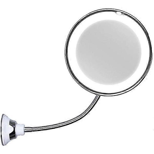 Gooseneck Cosmetic Mirror, 10x Magnification, LED Illuminated, Powerful Suction Cup, Cordless