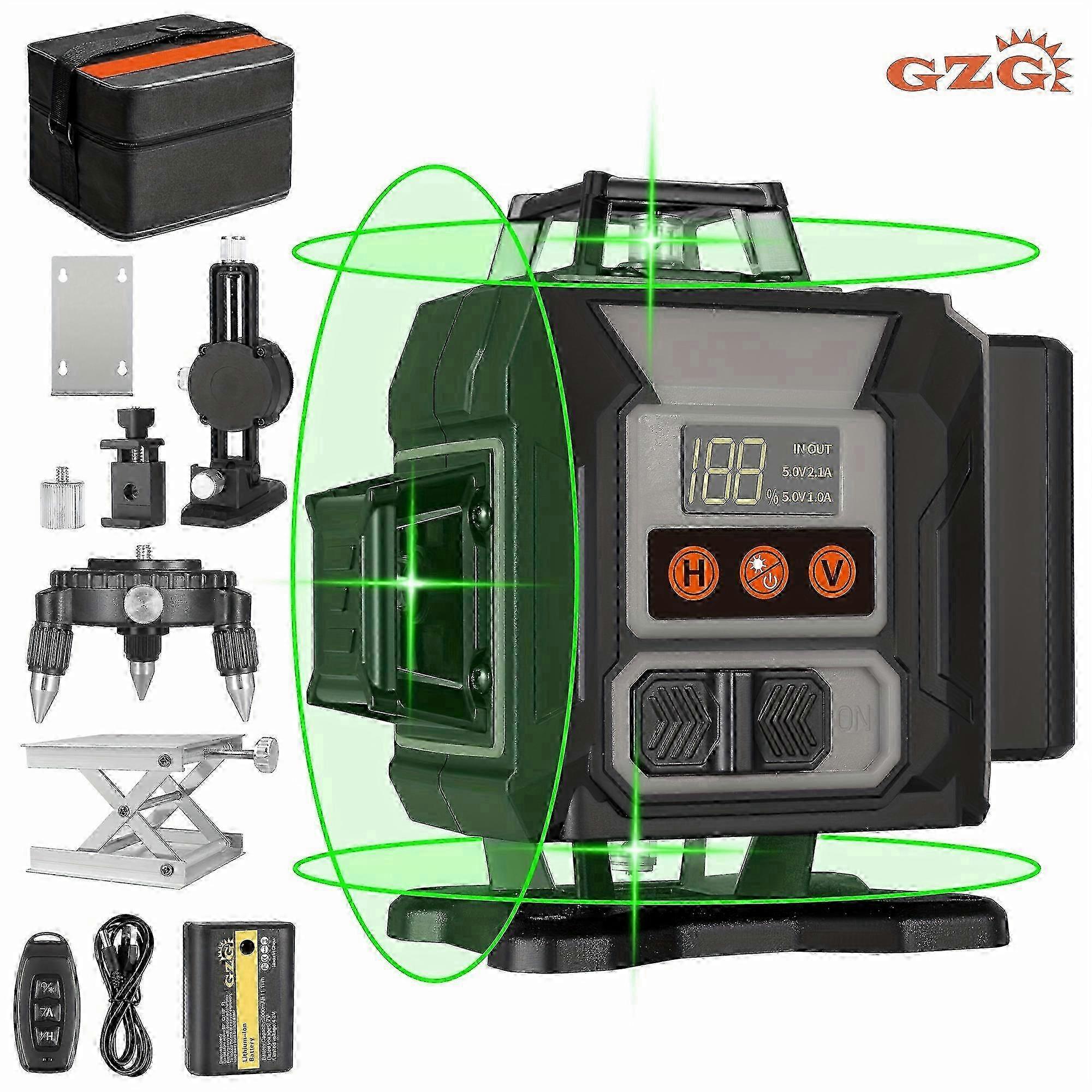 GZG Professional 4D Laser Level Kit - 16 Lines, Self-Leveling, Green Beam with LCD Display & Remote Control for Construction, Tiling