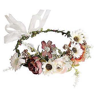 Floral Crown Boho Flower Headband with Adjustable Ribbon Tie for Bridal Wedding and Festival