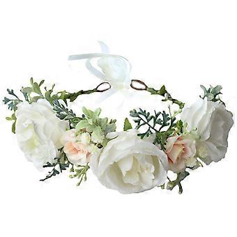 Flower Crown with Lifelike Floral Design Bridal Headpiece for Boho Wedding and Maternity Photos White