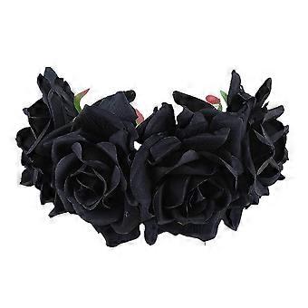 Black Rose Flower Crown with Lifelike Floral Design, Adjustable Headband for Bridal and Party