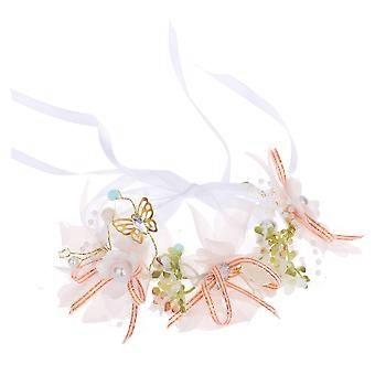 Bridal Flower Crown with Ribbon, Wedding Floral Headpiece for Bride Beach Party Photos Props Pink