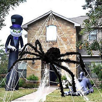 Halloween Decorations Spider Web, 50'' Giant Halloween Spider 200'' Triangular Web with 5 Ground Stakes 1 Gutter Hook, Halloween Decor Set for Indoor