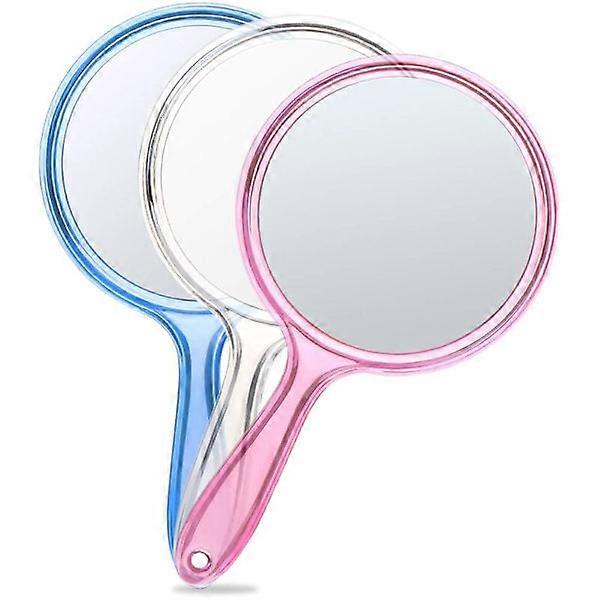 Hand Mirror, Double-Sided Hand Mirror 1X/3X Magnifying Mirror with Handle, 3-pack (Assorted Colors)