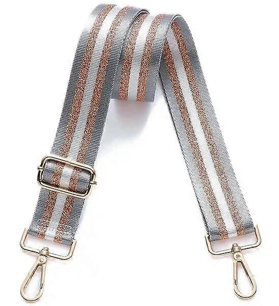 1. Handbag strap, adjustable 2. Dimensions: - Maximum length with fasteners 145 cm - Minimum length with fasteners 75 cm - Width 38 mm - NOTE - dimensions may vary +/- 2 cm 3. Material: - Metal base - Polyester ribbon 4. Color of parts: gold 5. Hard metal fittings