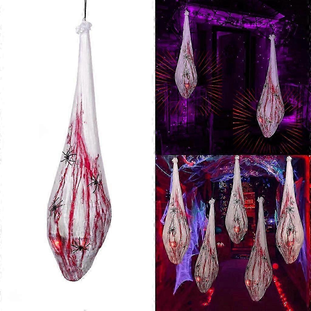 Hangings Skulls Head Covered with Spiders Web and Light Up Eye Decorations