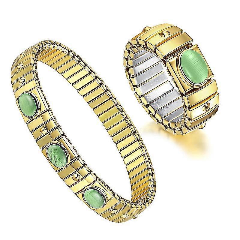 Hapiship 1 Set Women's Jewelry 9mm Width Stainless Steel Opals Elastic Bracelet 17cm Ring Size 7 For Best Friend Wife Gift My09