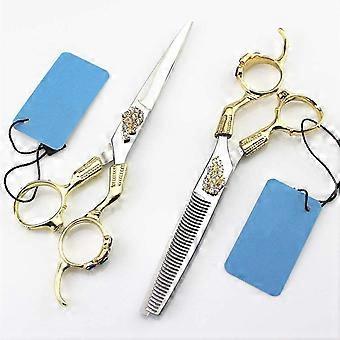 6,0 tuuman kultaiset ammattimaiset hiustenleikkaussakset, joissa on ohennusleikkurit salonkiin ja kotiin