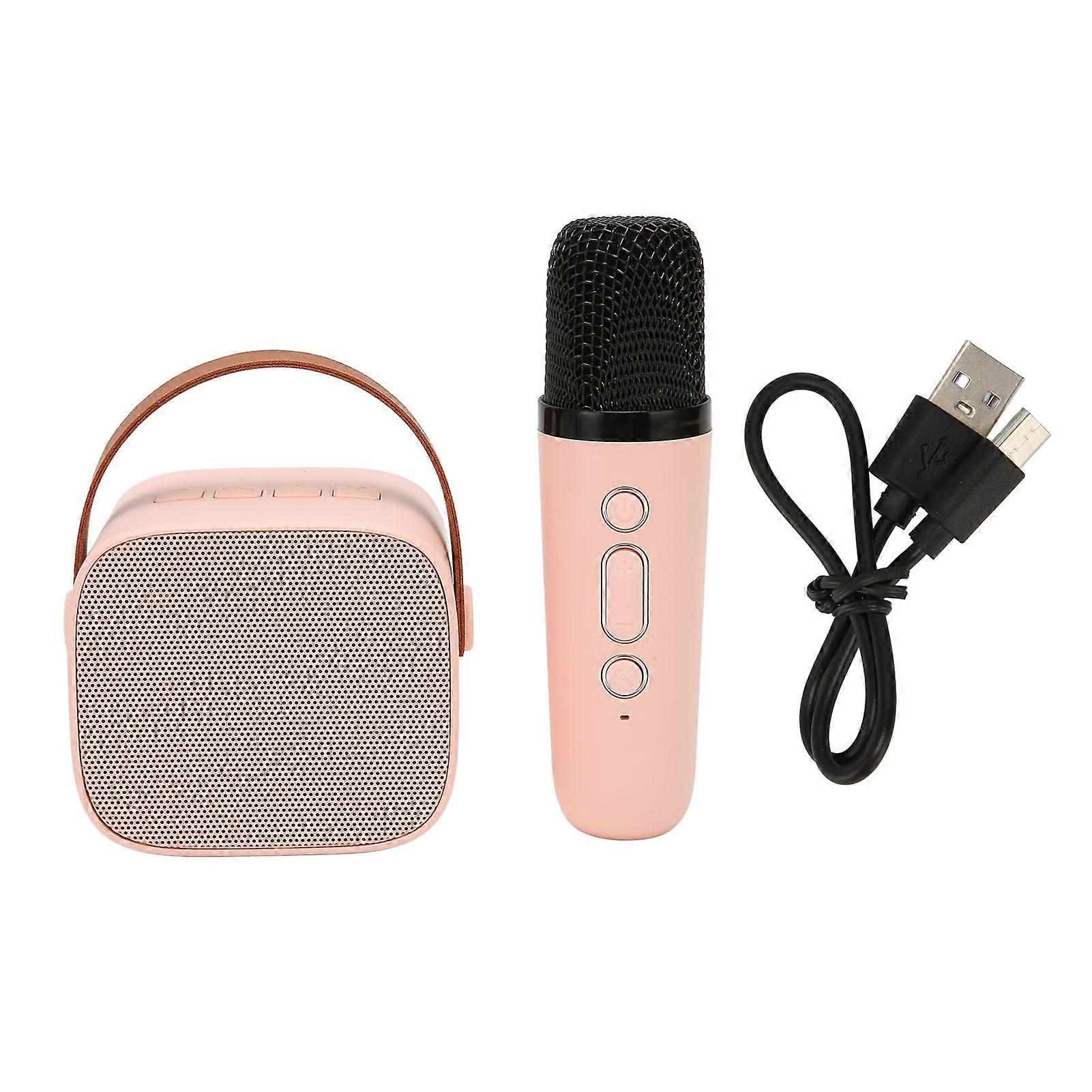 Bluetooth Speaker Microphone Set HD Stereo Rechargeable Retro Portable Karaoke Machine for Kids Adults Party Pink