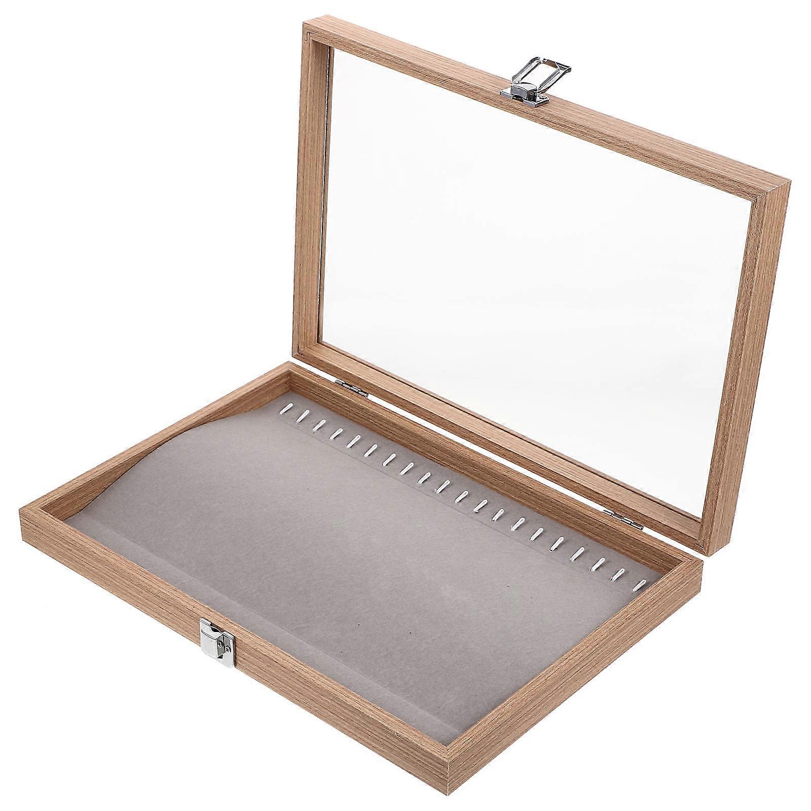 Here's a polished product description based on your input: **Large Wooden Jewelry Display Box with Clear Lid – Scratch Resistant Organizer Tray