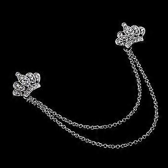 2xDouble حجر الراين تاج طبقات سلسلة بروش كريستال بروش طوق الصدار
